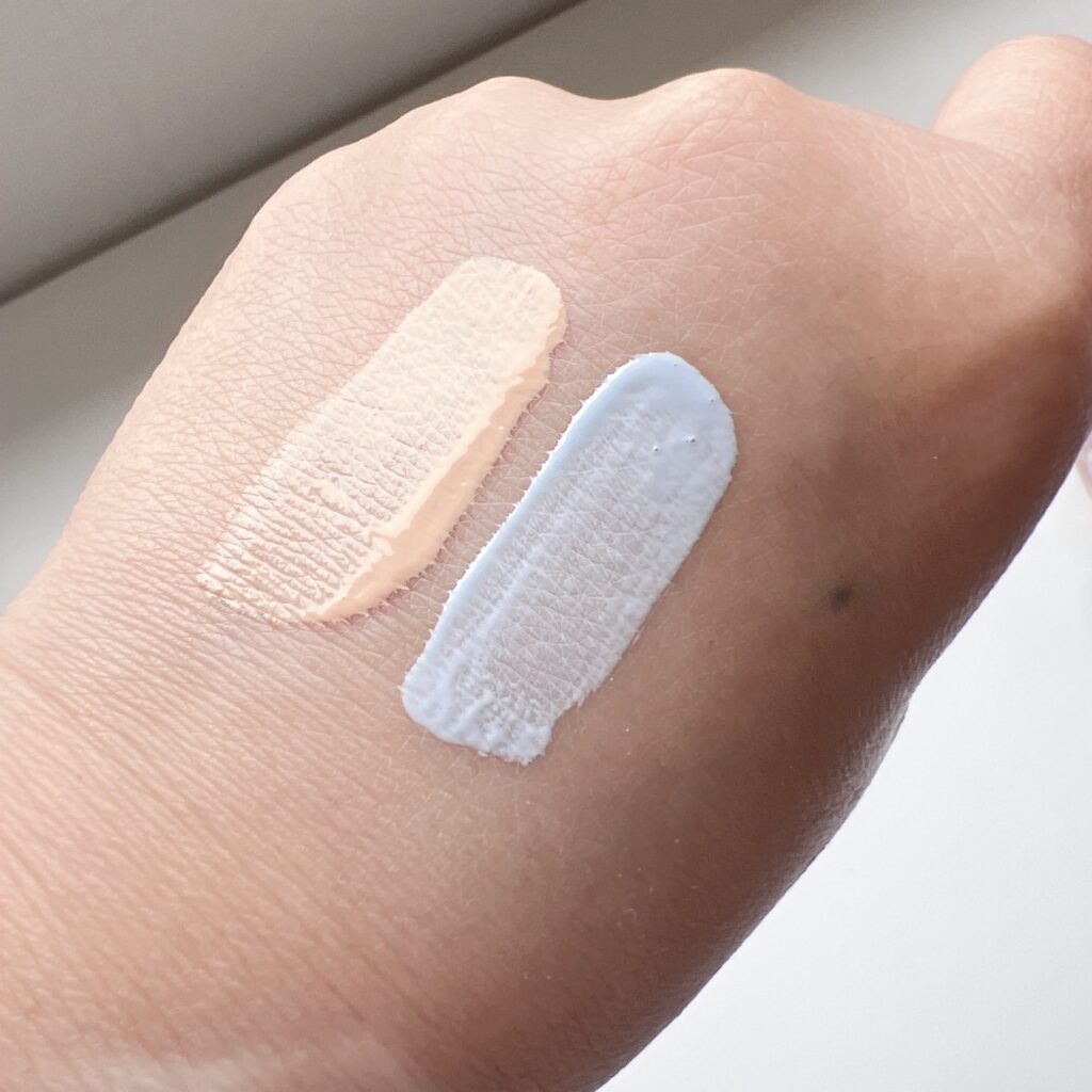 左:リカバリーファンデーション01 中:レベルアップベースブルー 右:レベルアップベースオレン